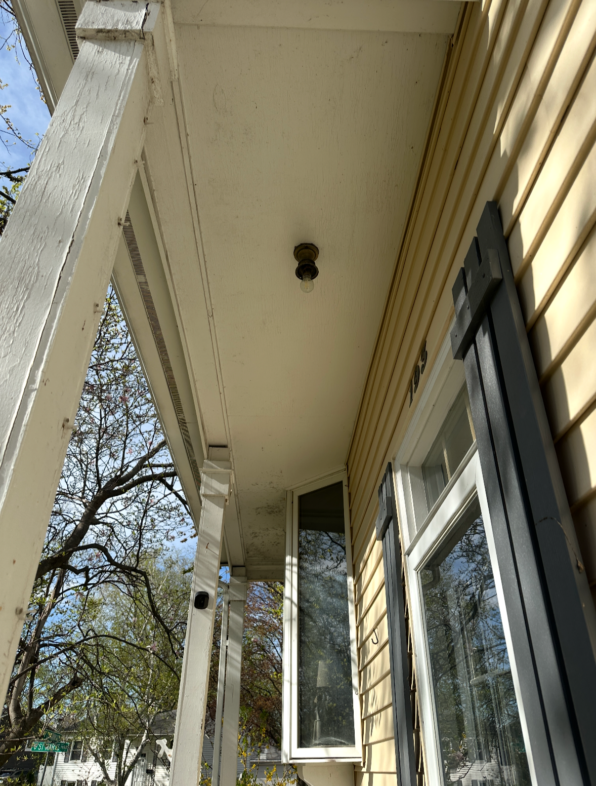 This project focused on improving an aging front porch ceiling that suffered from poor lighting, surface wear, and overall discoloration from long-term exposure. The space was updated to improve brightness, cleanliness, and visual cohesion, resulting in a more welcoming exterior entry while maintaining the existing structure.